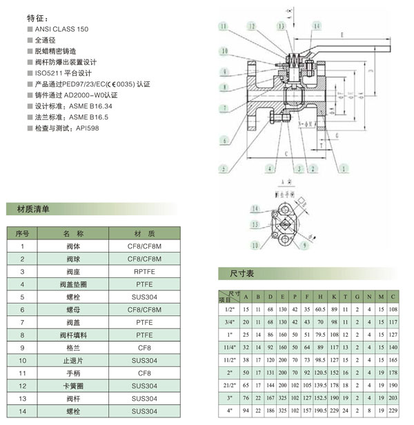 2PC美标法兰球阀